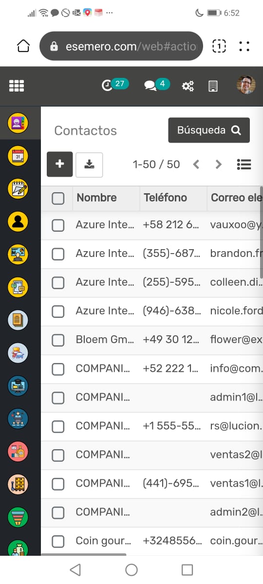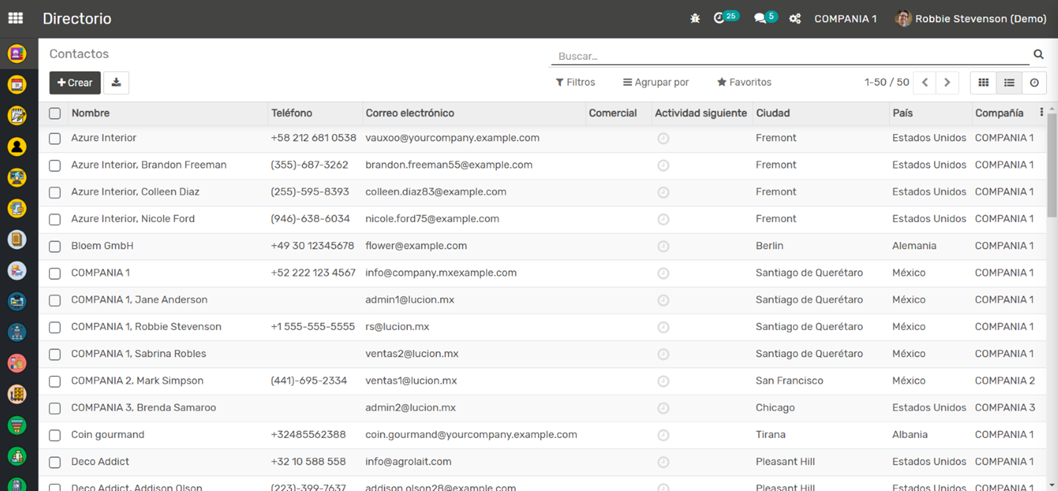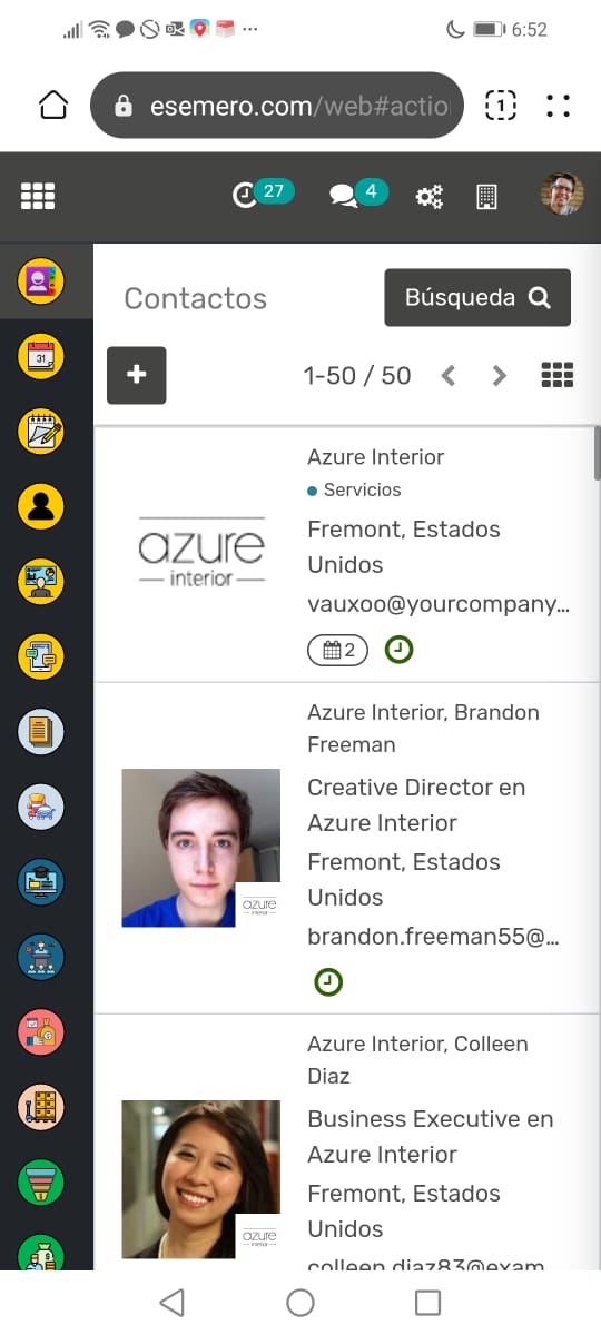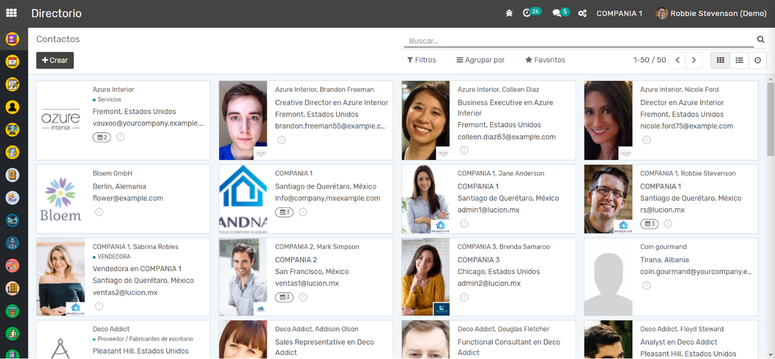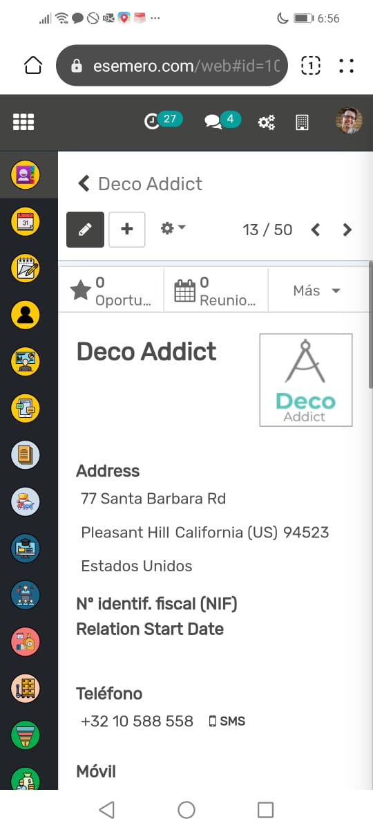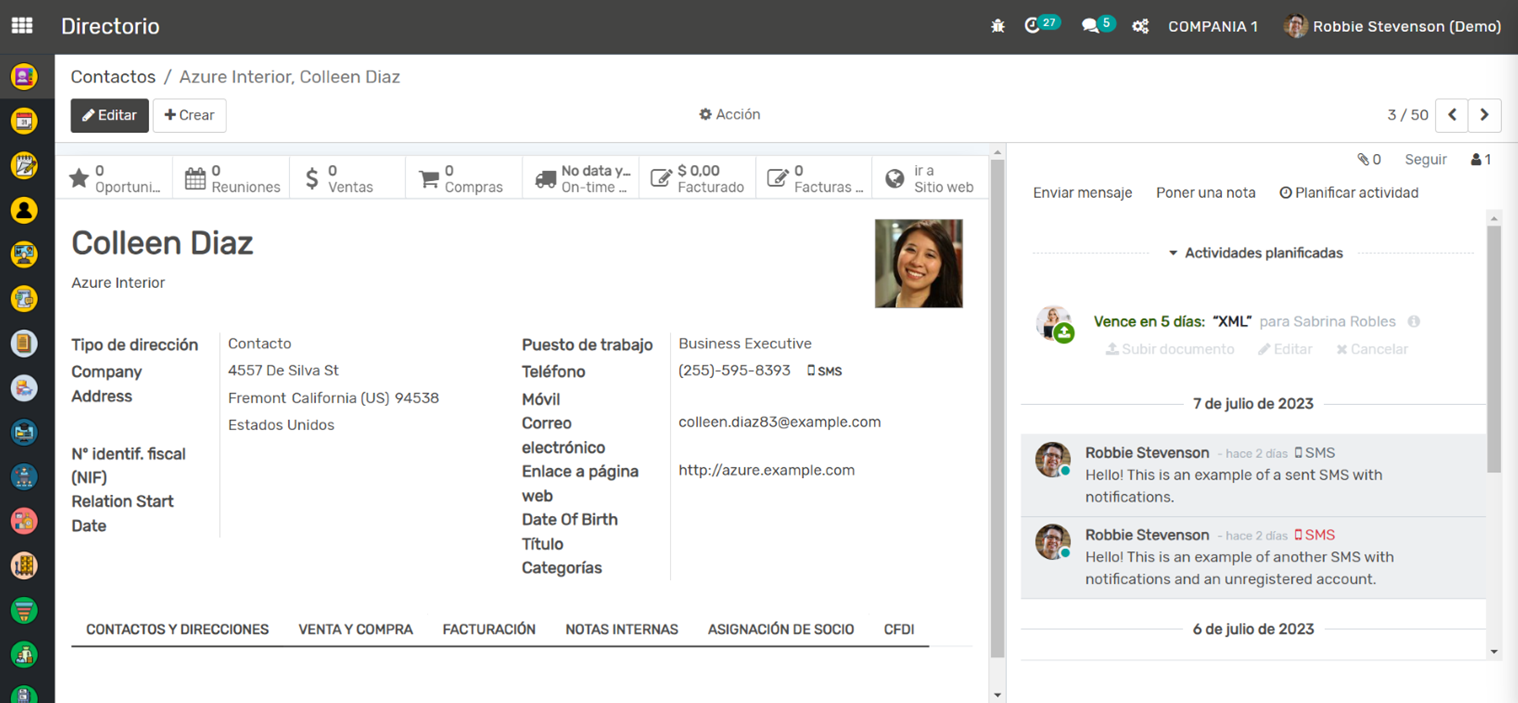 Cada ficha de contacto en la aplicación proporciona detalles completos del contacto, incluyendo información como la dirección, el sitio web, la actividad de ventas, las oportunidades y más. Este nivel de detalle ayuda a tener un mejor seguimiento y entendimiento de tus contactos, lo que puede resultar en relaciones comerciales más sólidas y efectivas.