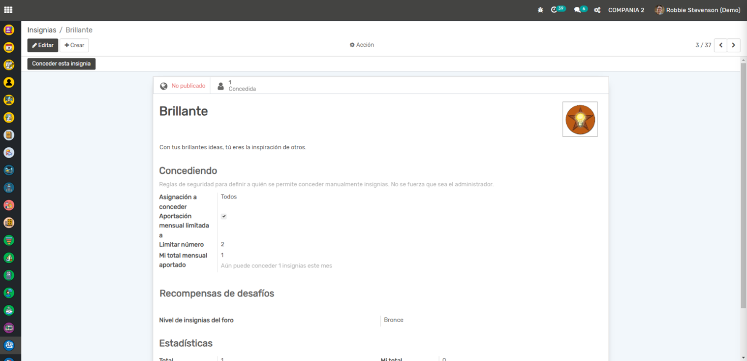 Evaluaciones: Esta aplicación te permite realizar evaluaciones y revisiones del desempeño de los empleados. Puedes establecer una evaluación periódica y enviar formularios de evaluación a los empleados y/o a sus supervisores.