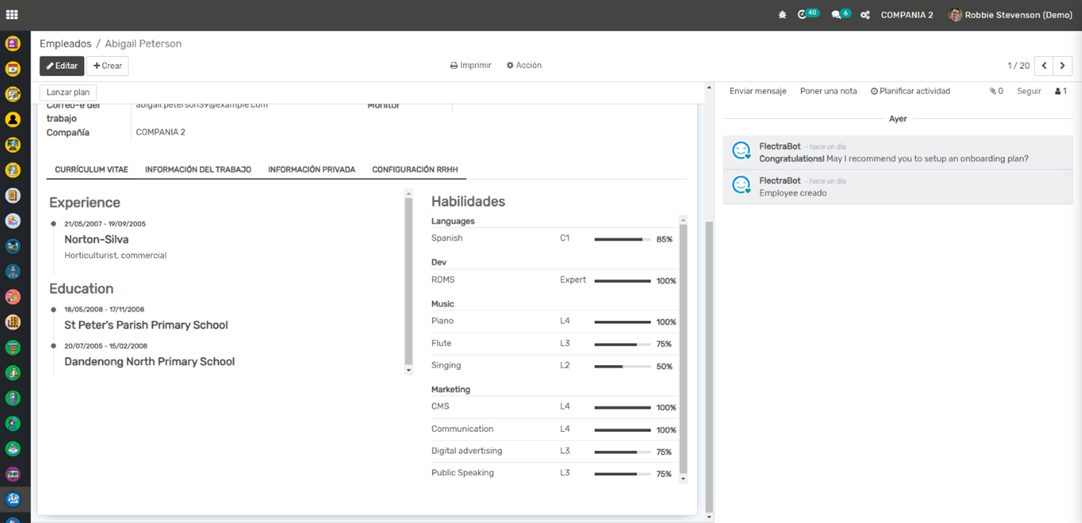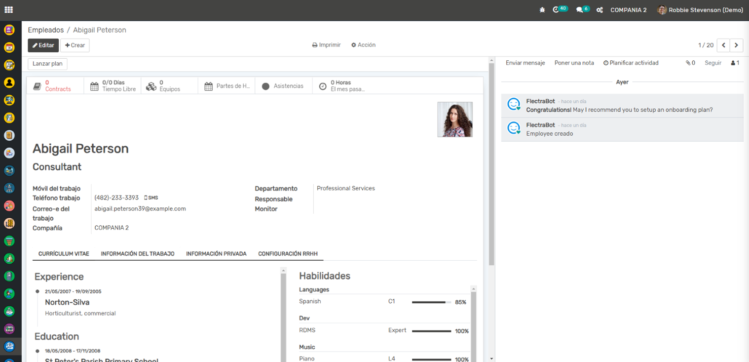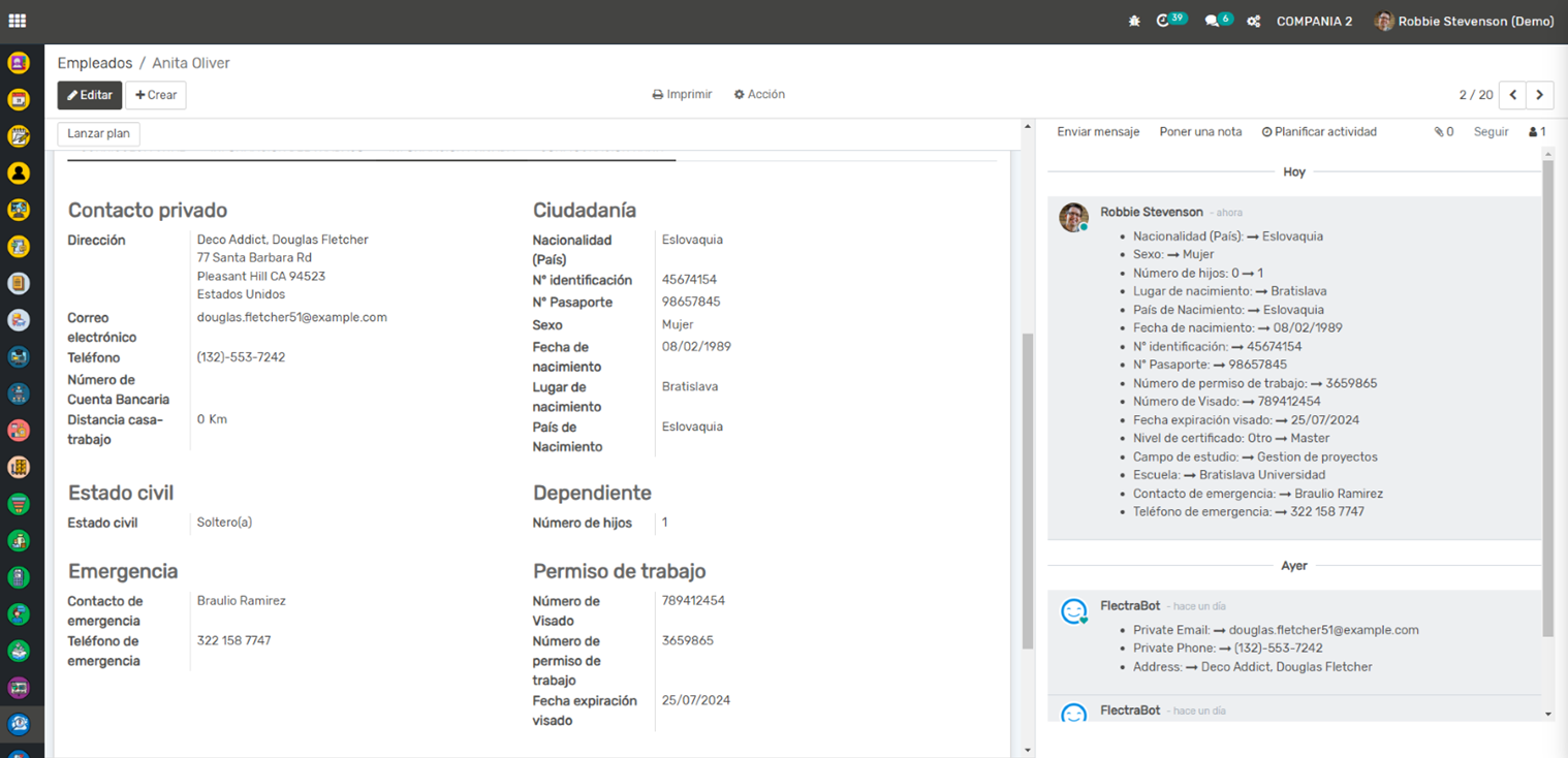 Gestión de Empleados: Esta aplicación te permite mantener un registro detallado de todos tus empleados, incluyendo su información personal, detalles del contrato, posiciones, horarios de trabajo y más. También puedes seguir la evolución de cada empleado en la empresa (promociones, cambios de salario, etc.).