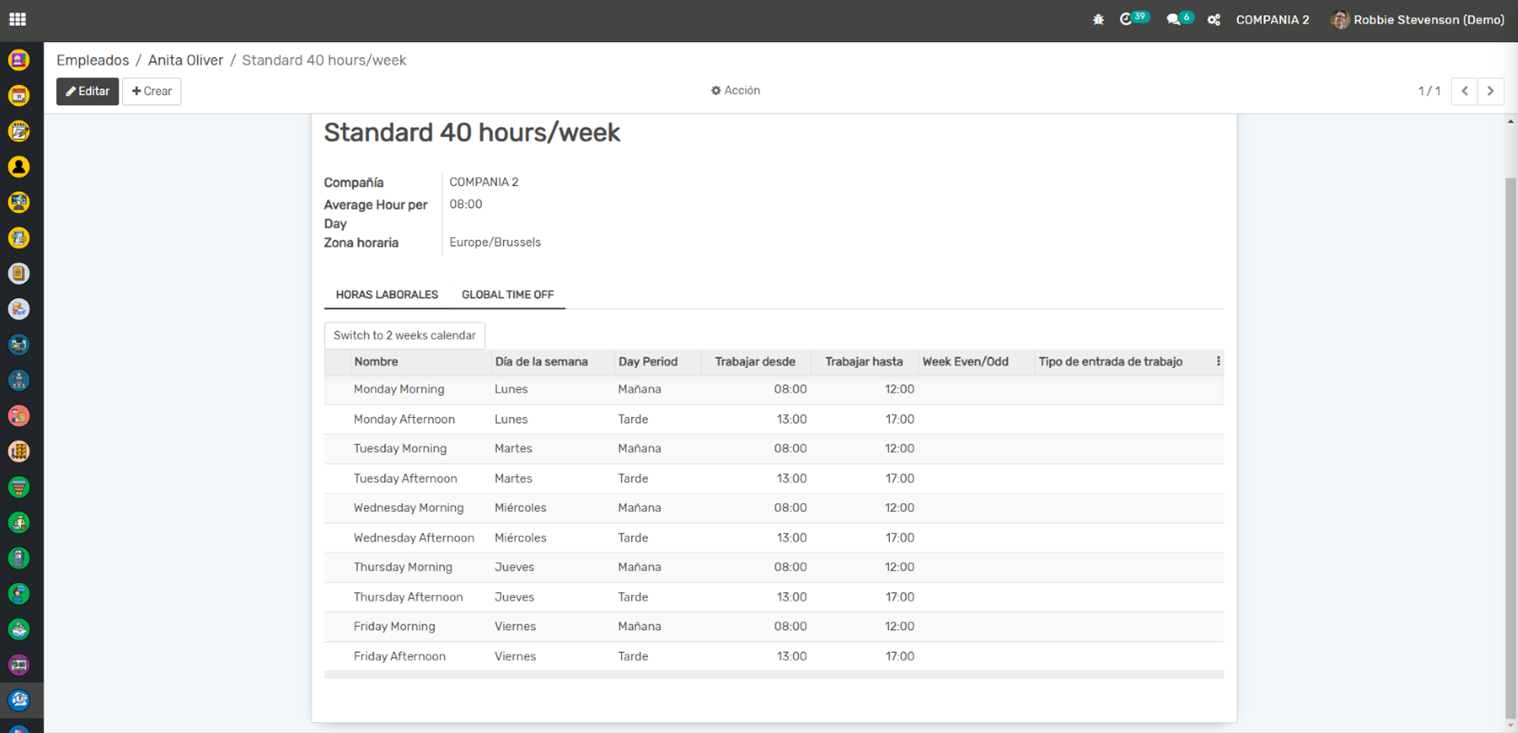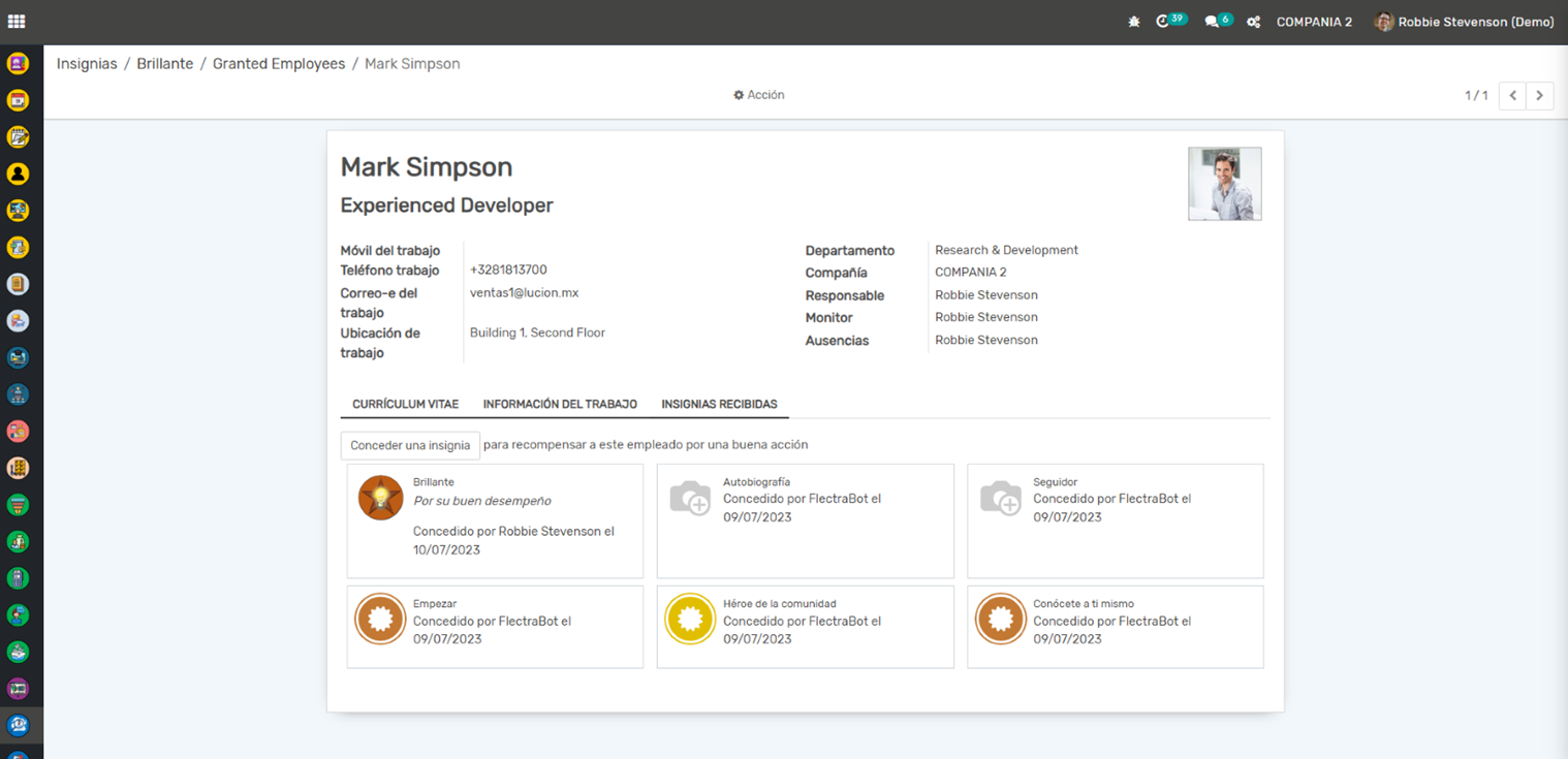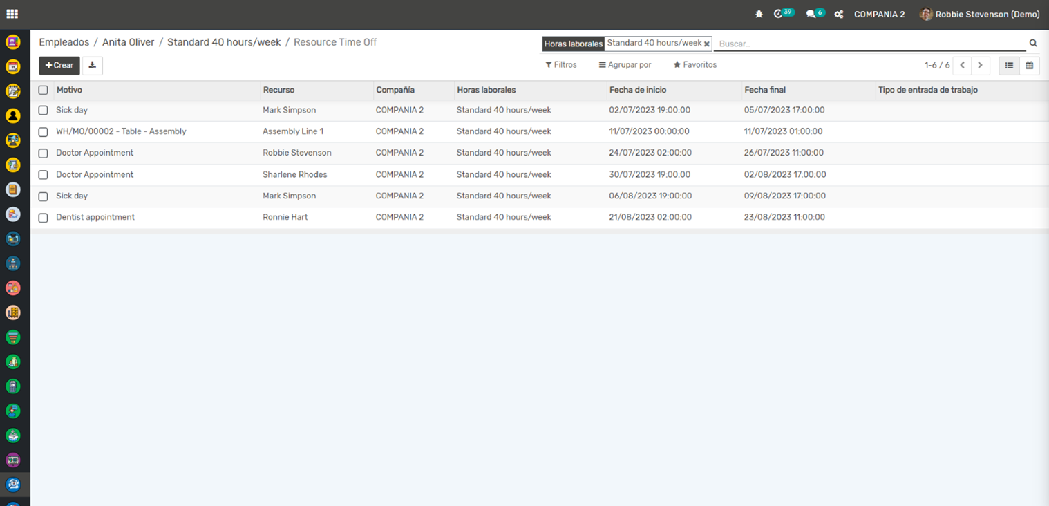 Ausencias y Vacaciones: Puedes gestionar y seguir las solicitudes de ausencia y vacaciones de los empleados. Los empleados pueden solicitar ausencias y los gerentes pueden aprobarlas o rechazarlas directamente desde la aplicación.