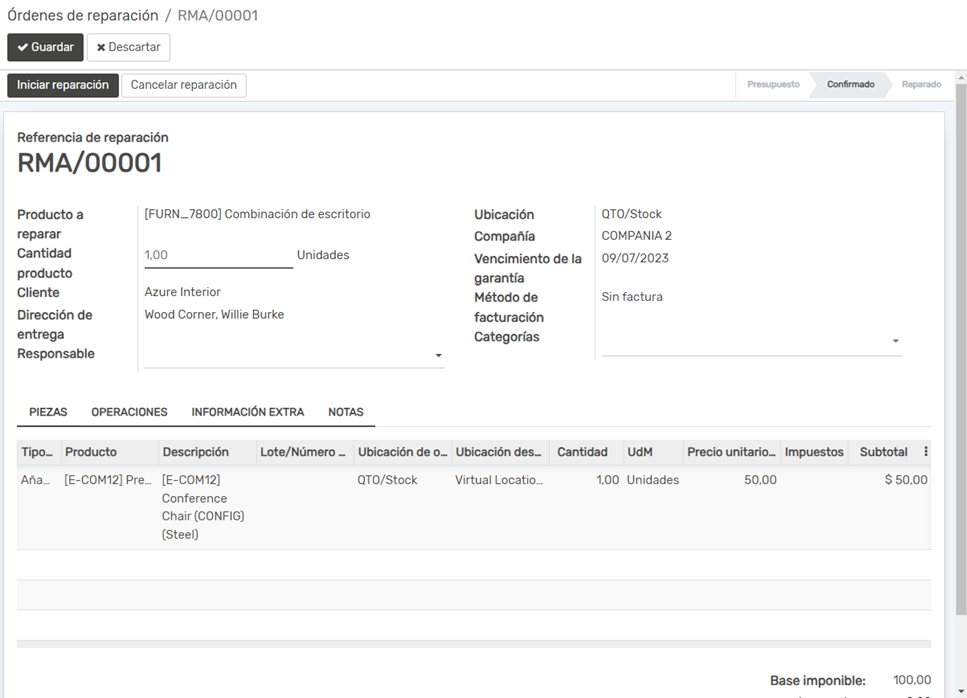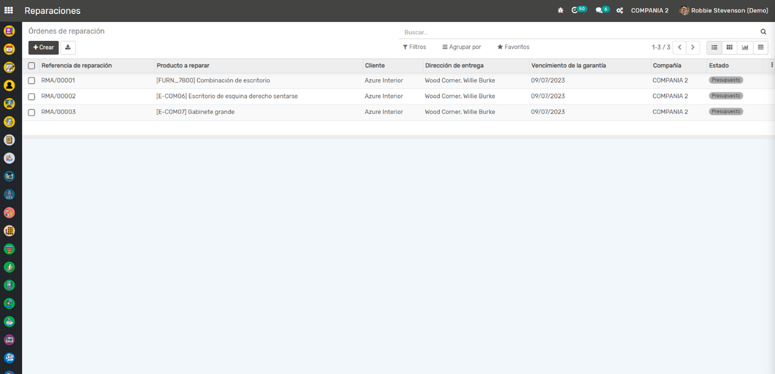 Inventario de Piezas: La aplicación está integrada con el módulo de inventario, por lo que puedes rastrear las piezas utilizadas en las reparaciones. Si se necesitan partes adicionales, puedes pedirlas directamente desde la orden de reparación.
