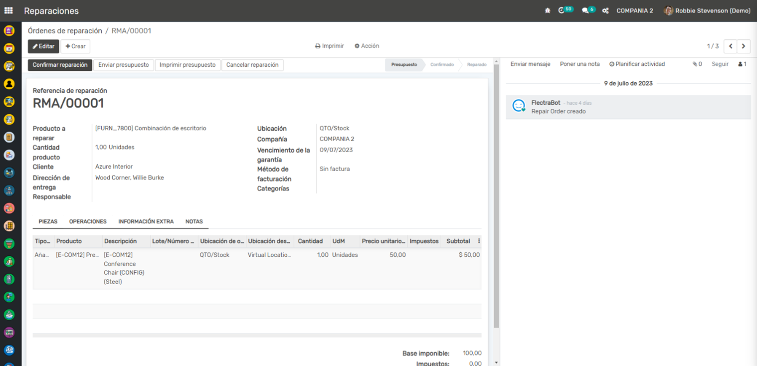 Integración con Facturación: Una vez que se ha completado la reparación, puedes crear y enviar una factura al cliente directamente desde la orden de reparación.