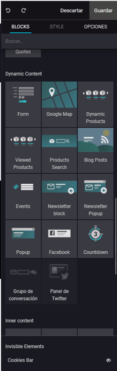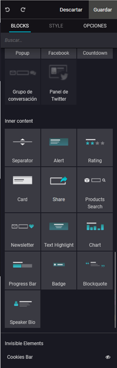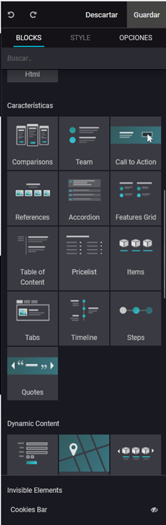 • Inserta widgets externos :  Inserta código personalizado y úsalo como un widget en cualquier página.