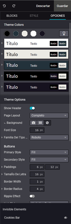 • Editor CSS : Personaliza reglas CSS en LESS para obtener más potencia.