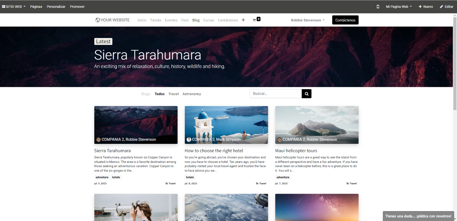El módulo Blogs permite a las empresas crear y compartir contenido atractivo en su sitio web. Algunas de las características más notables incluyen: