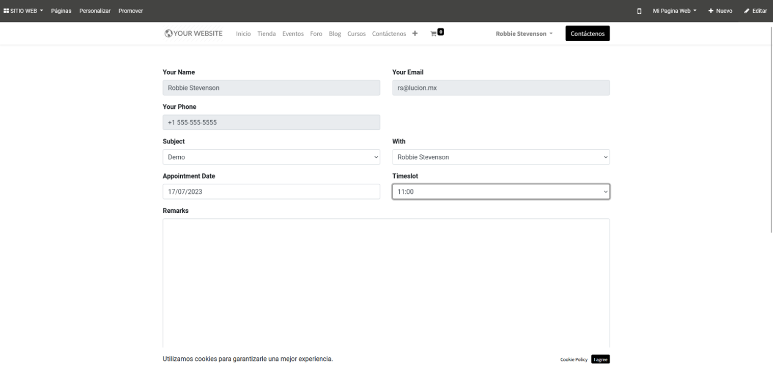 Este módulo genérico permite a los visitantes del sitio web programar citas o videollamadas con los usuarios en horarios específicos. Algunas de las características más notables podrían incluir: