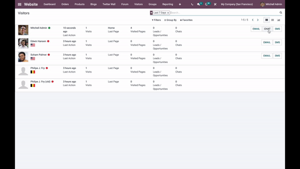 • Tablero en tiempo real:  Rastrea a tus visitantes en tiempo real y contacta a los más interesantes con solo un clic: notificaciones push, chat en vivo, SMS, etc.