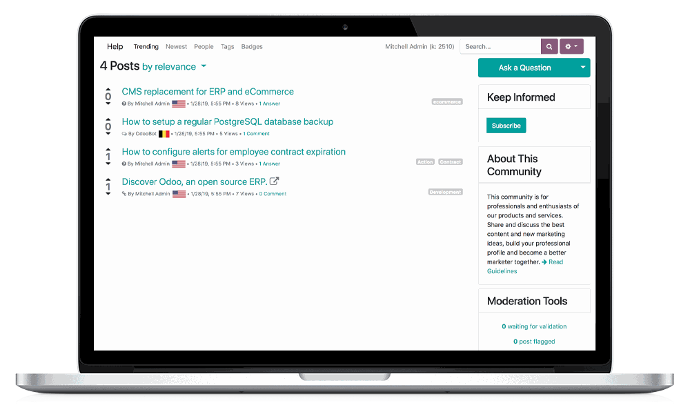 El módulo Foro permite a las empresas establecer una plataforma de discusión en su sitio web. Algunas de las características más notables incluyen: