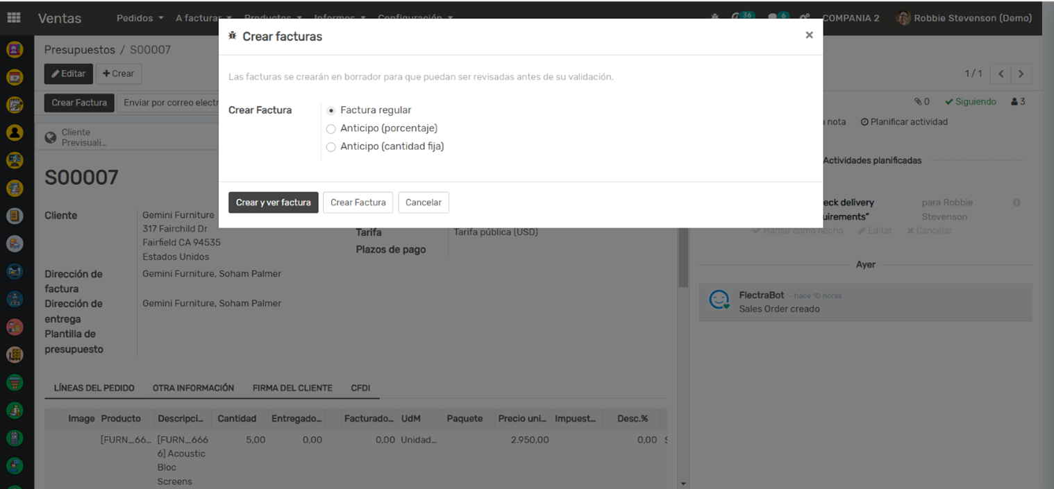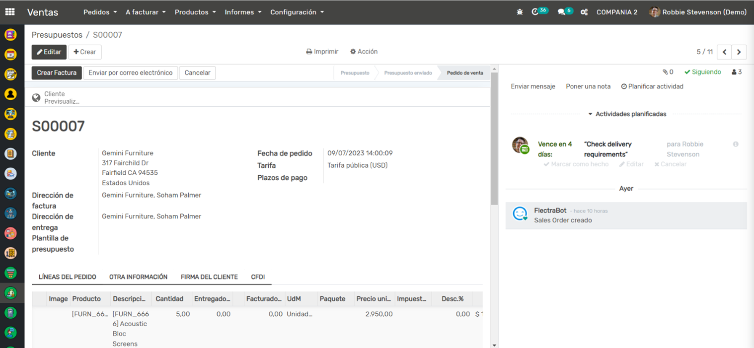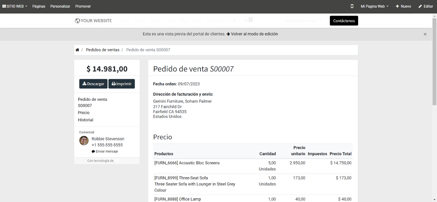 Portal del Cliente: Los clientes pueden acceder a sus cotizaciones, órdenes de venta, y facturas a través del portal del cliente. También pueden confirmar las cotizaciones y las órdenes de venta, lo que ahorra tiempo para ambas partes.