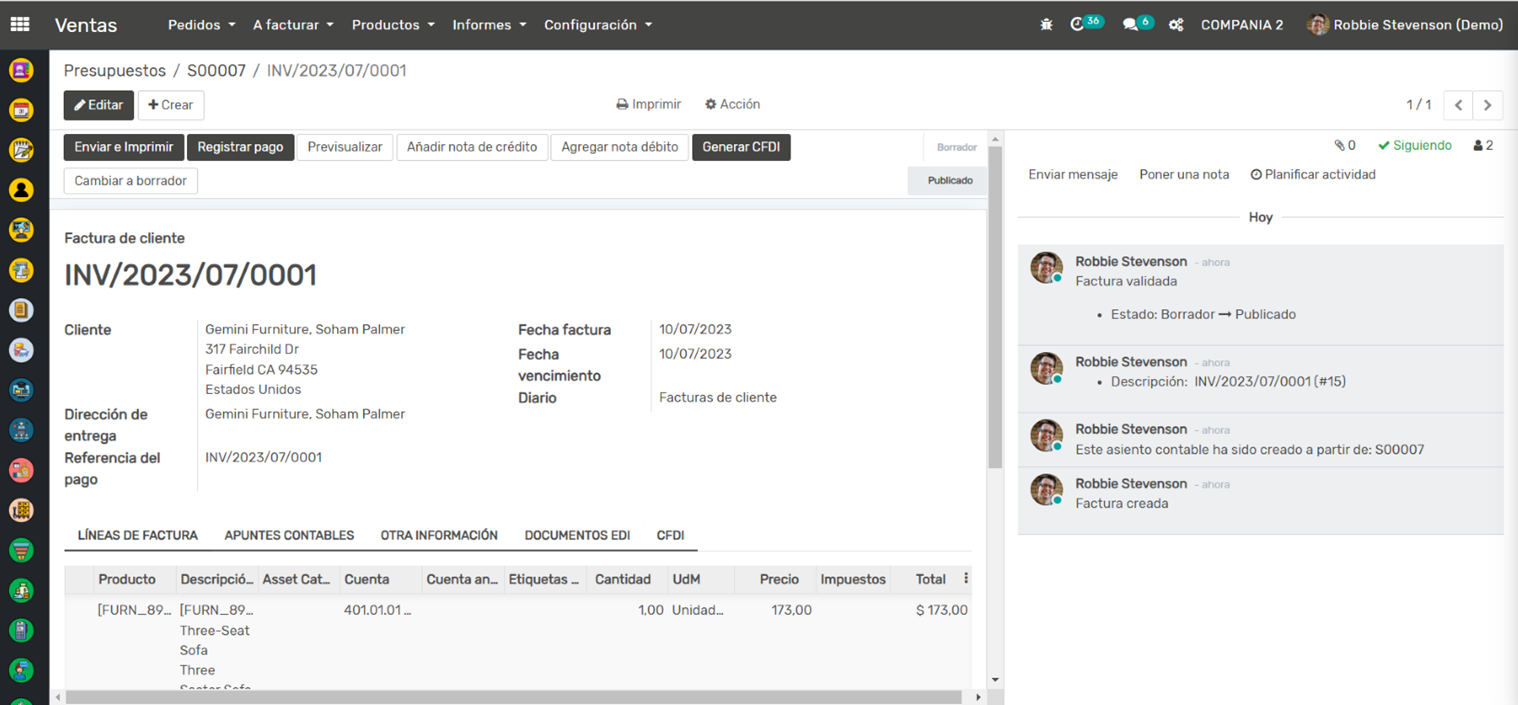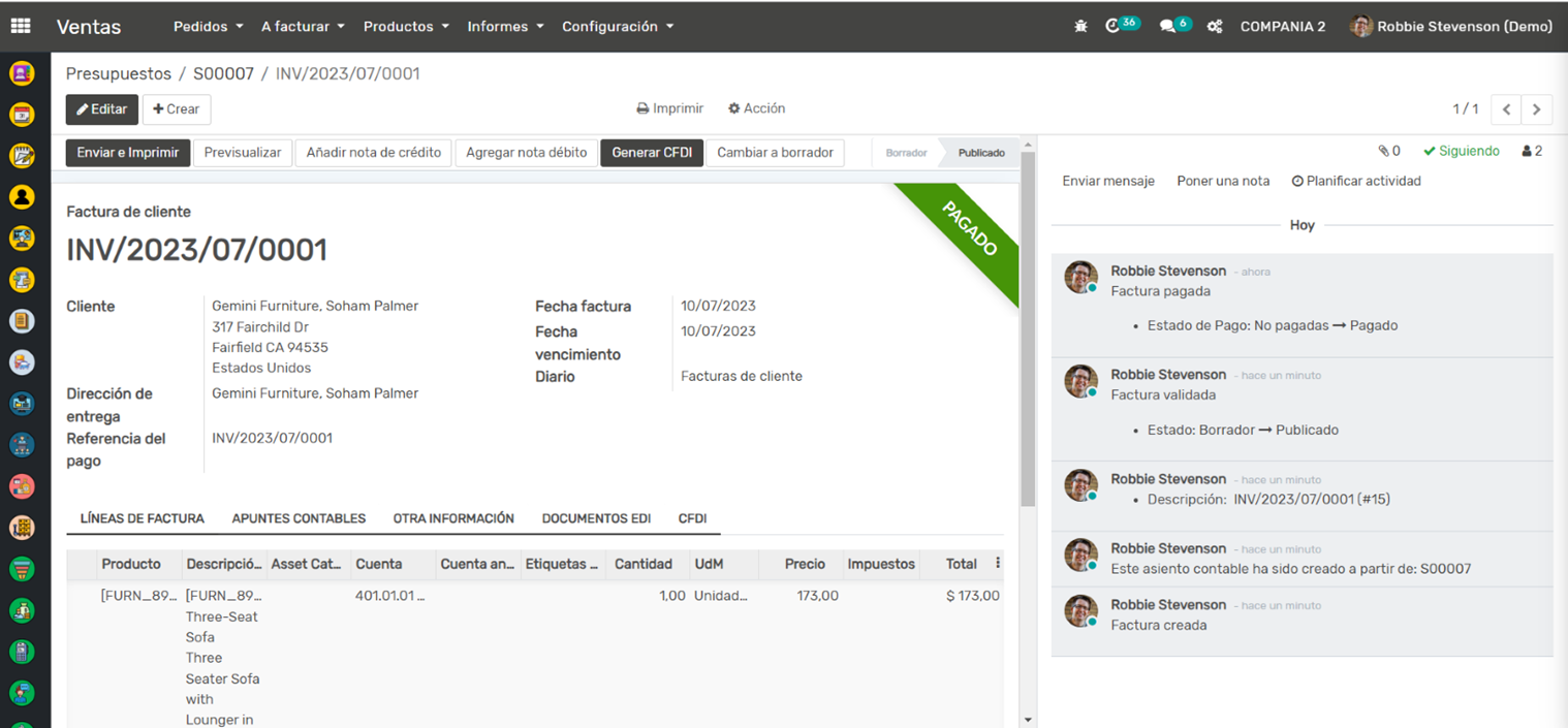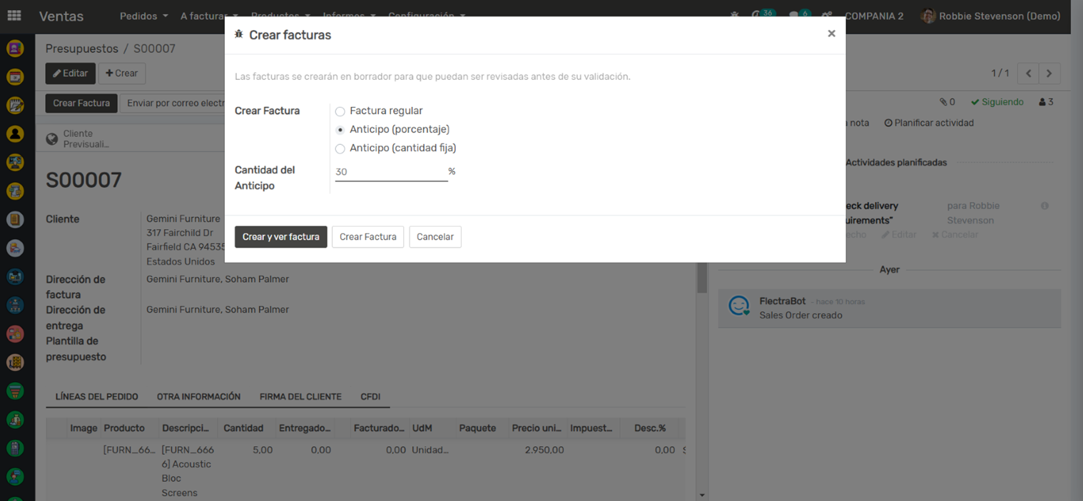 Portal del Cliente: Los clientes pueden acceder a sus cotizaciones, órdenes de venta, y facturas a través del portal del cliente. También pueden confirmar las cotizaciones y las órdenes de venta, lo que ahorra tiempo para ambas partes.