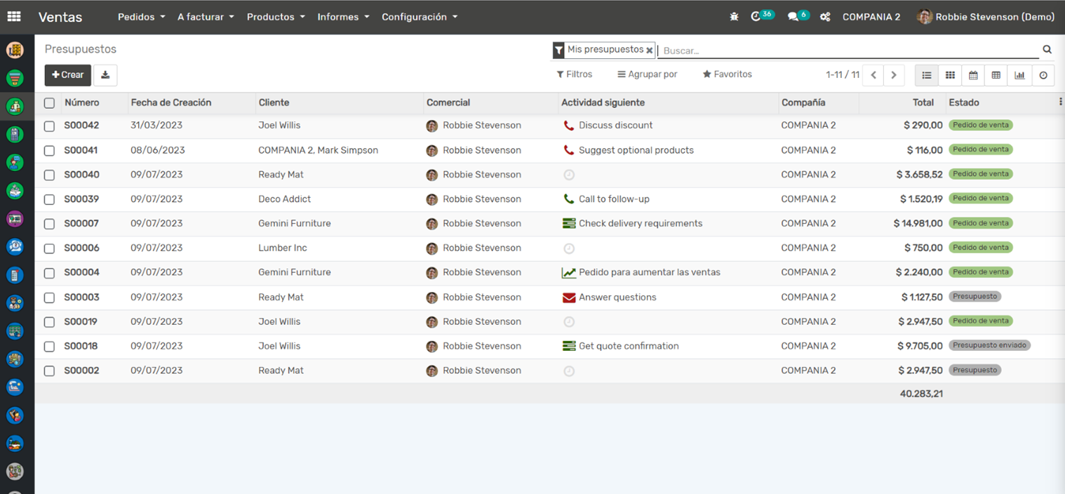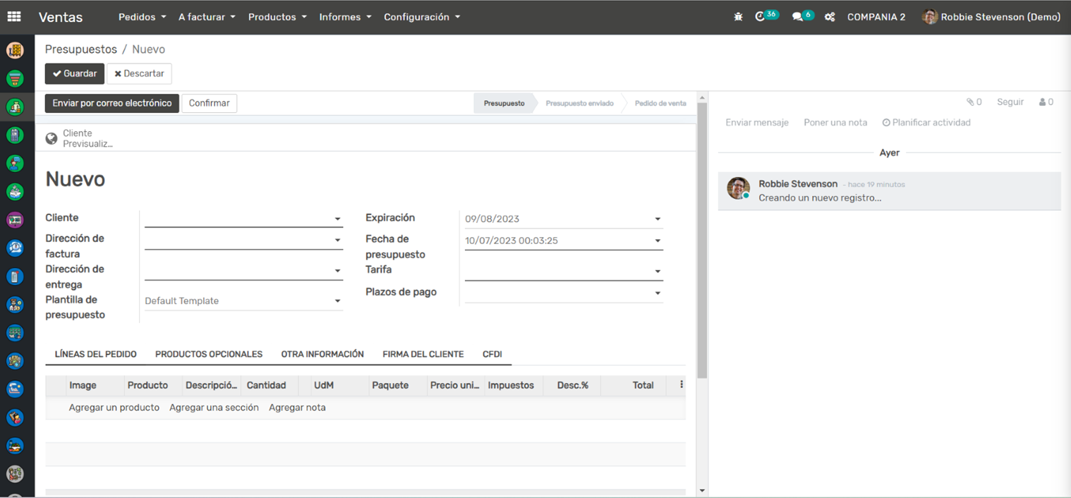 Gestión de Cotizaciones: Permite crear y gestionar cotizaciones detalladas para los clientes. Las cotizaciones pueden ser enviadas directamente a los clientes desde la plataforma y también se pueden convertir en órdenes de venta con un solo clic.