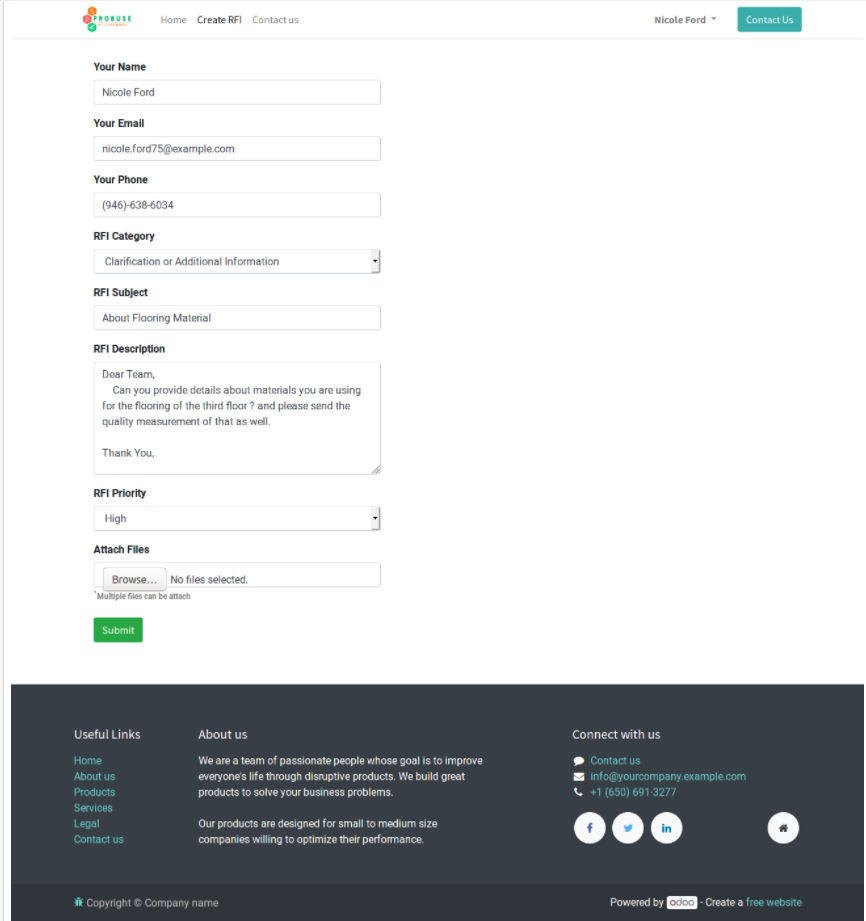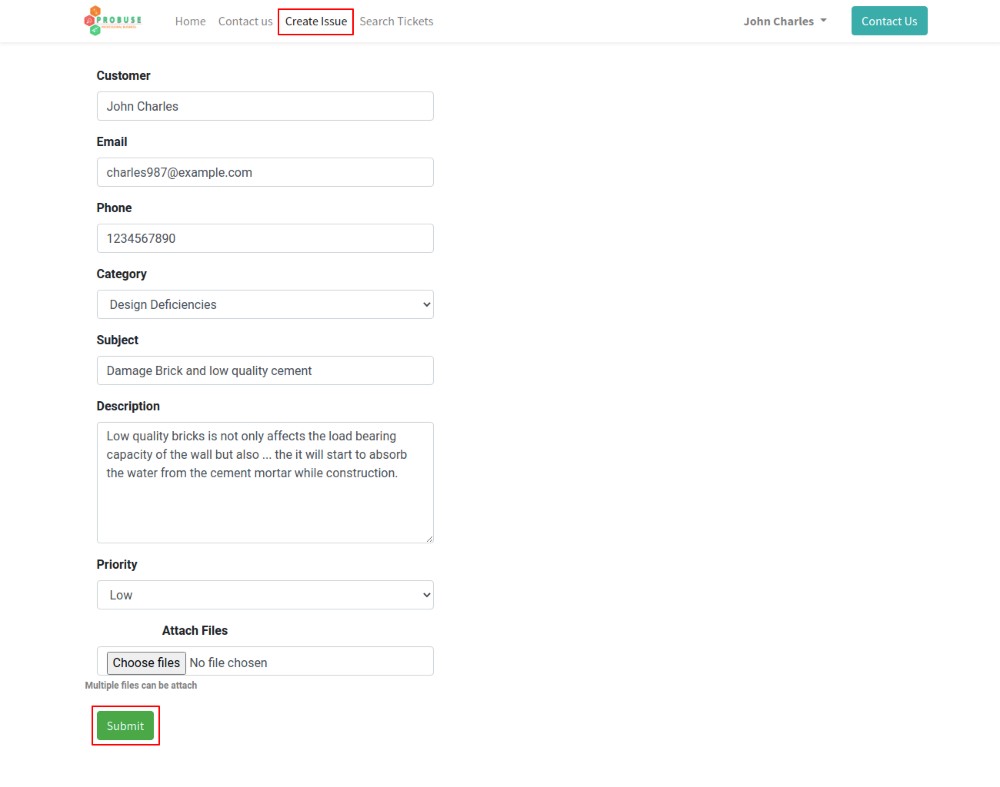 Sus clientes que tienen acceso al menú de problemas en el portal de su sitio web pueden tomar fotos y escanear desde el móvil y enviarlas a su equipo de proyecto de back-end.
