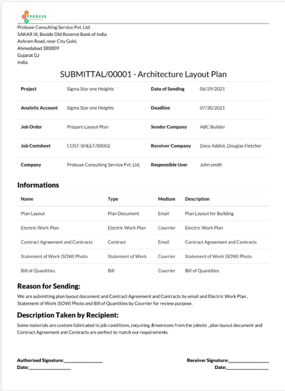 Un documento de transmisión es un documento que se envía junto con otros documentos y archivos al receptor. Permite a cada persona realizar un seguimiento de todas las comunicaciones que se producen entre todos en el proyecto de construcción. Proporciona prueba de que los documentos, muestras o archivos se han enviado y registra cuándo se enviaron y a quién se enviaron. Si llega una pregunta al equipo del proyecto, pueden consultar la transmisión más adelante.