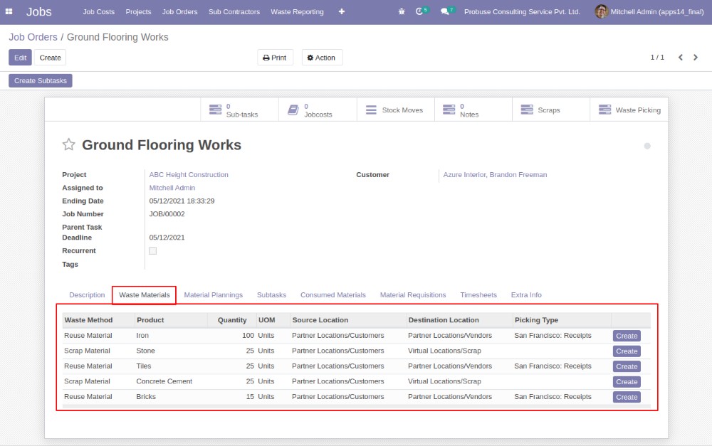 Este módulo le permite gestionar los materiales de desecho de la construcción utilizando métodos de desecho y reutilización para su negocio de construcción y contratación de obra.