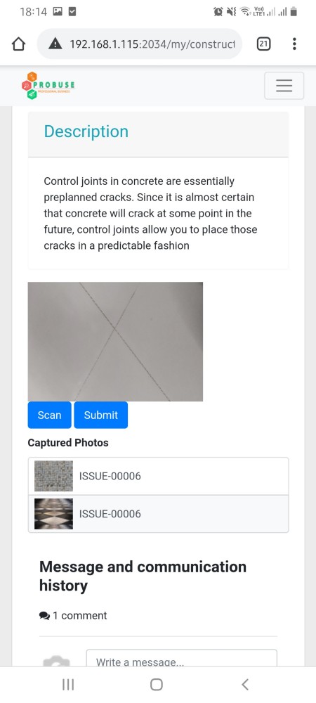 Esta aplicación le permite a su cliente/usuario del portal/agente/subcontratista tomar fotos desde el móvil para tareas y enviarlas al equipo del proyecto de back-end y también le permite a su cliente tomar fotos para problemas relacionados con la construcción y enviarlas al equipo de back-end.