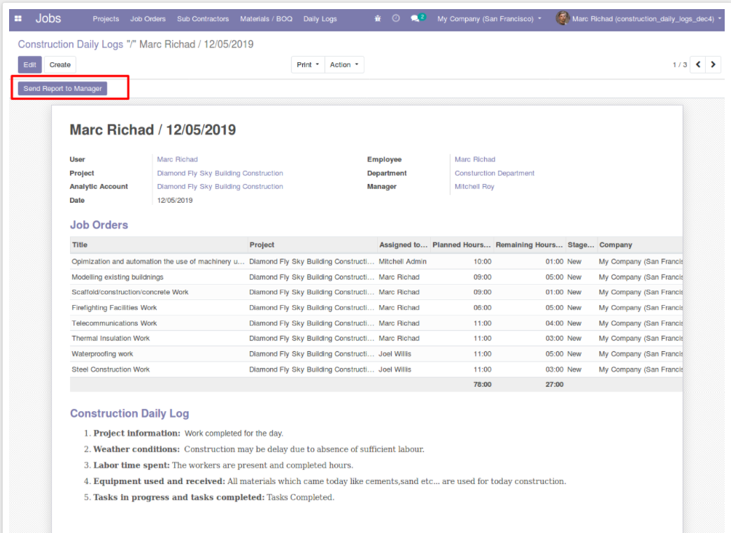 Permita que sus usuarios y gerentes de proyecto creen registros diarios para proyectos de construcción, proyectos de contratación de trabajo y órdenes de trabajo/órdenes de trabajo.