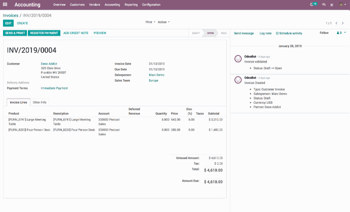 Factura automáticamente según órdenes de venta, órdenes de entrega, contratos o tiempo y material.